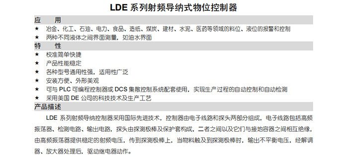 LDE射頻導(dǎo)納式物位控制器(標(biāo)準(zhǔn)型)
